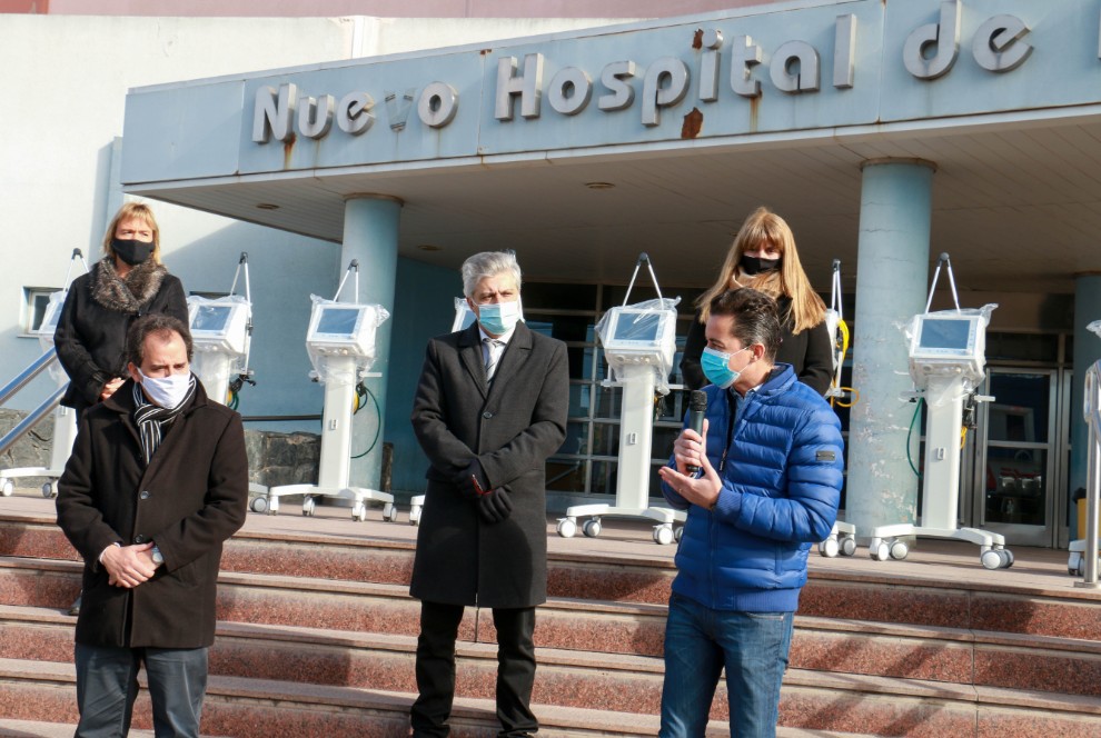 La aparatología incorporada en la jornada consiste en 10 respiradores neumovent y 10 monitores multiparamétrico. La inversión ascendió a 8,7 millones de pesos, que se suma a al ecógrafo portátil, 17 respiradores y 12 monitores multiparamétrico entregados en mayo.
