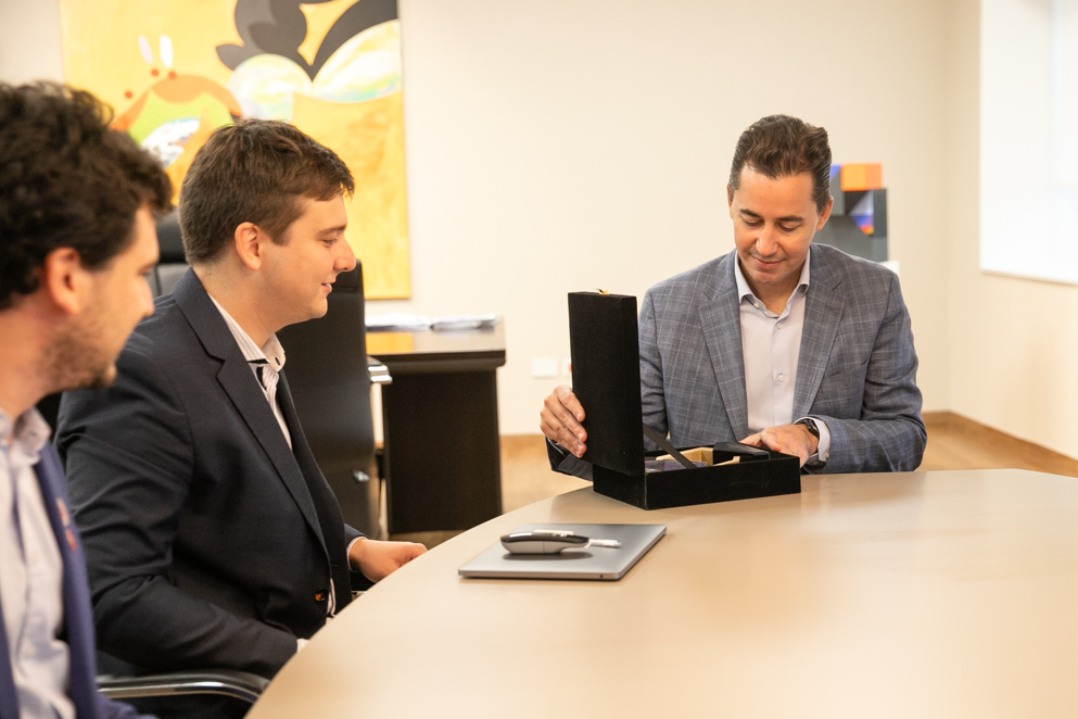 El vicegobernador Manuel Calvo recibió esta mañana a los representantes de OTTAA Project que recientemente fueron reconocidos en los Emiratos Árabes en un congreso internacional de innovación tecnológica.